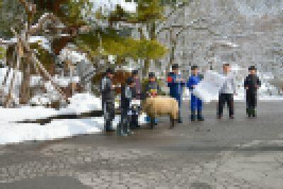2月2日に3年生の総合的な学習の時間の取組で、羊の風花ちゃんのお店のCMを撮影しました。